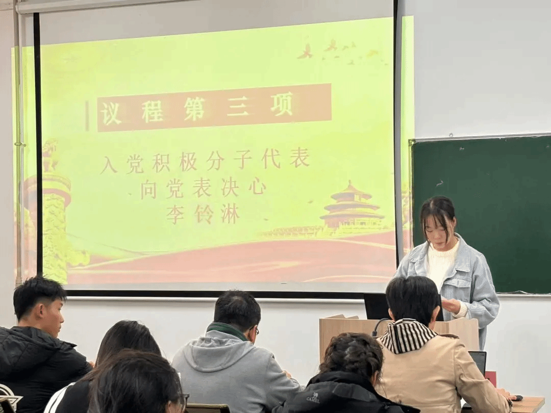 作为本次入党积极分子的代表,李铃淋同学代表全体学员向党组织表态:面向未来,继续深化对党的认识,加强政治理论学习,提高个人综合素质。通过实际行动践行社会主义核心价值观,以更加饱满的热情投身到工作和学习中,不断追求卓越。