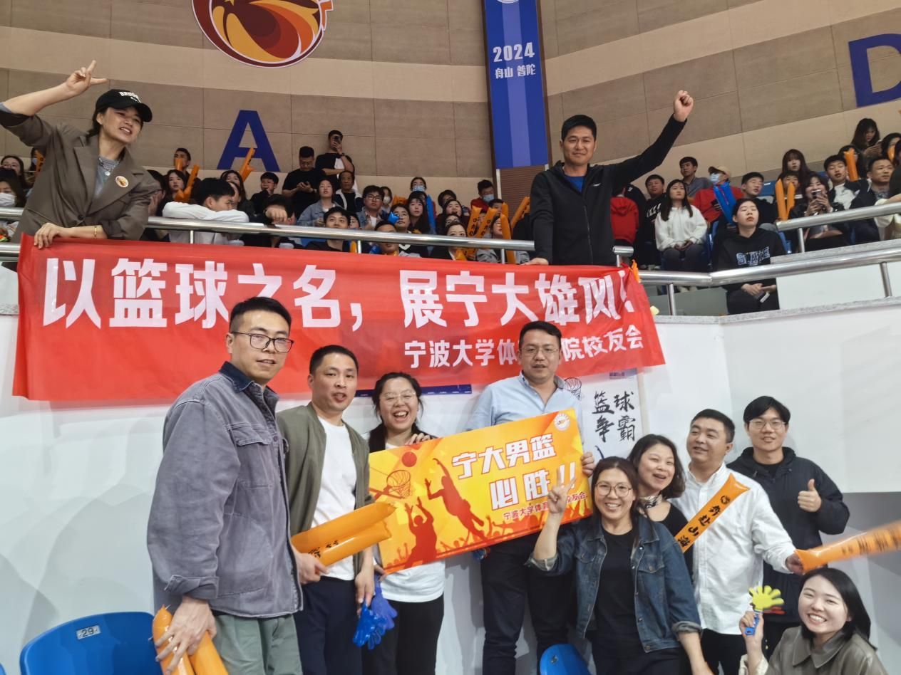 在场的校友们也欢欣雀跃、群情激昂。每一次运球投篮,校友们手中的加油棒都奋力鼓动!每一次精准三分,校友们都大声叫好!“宁大,加油!”“宁大,必胜”响彻在普陀区体育馆的上空!体院男篮们在校友们的加油助威中越战越勇,挥洒着汗水,燃烧着激情。