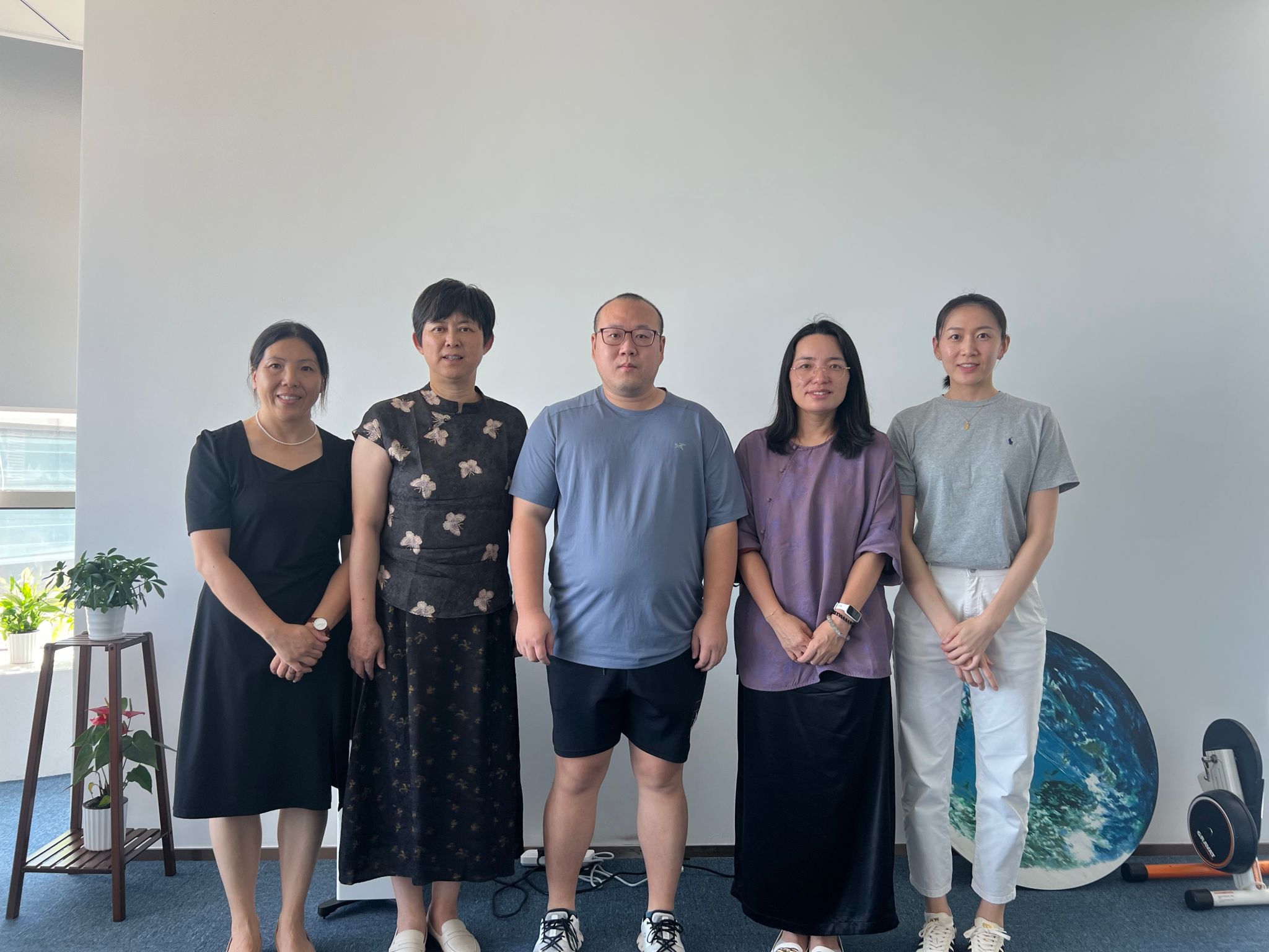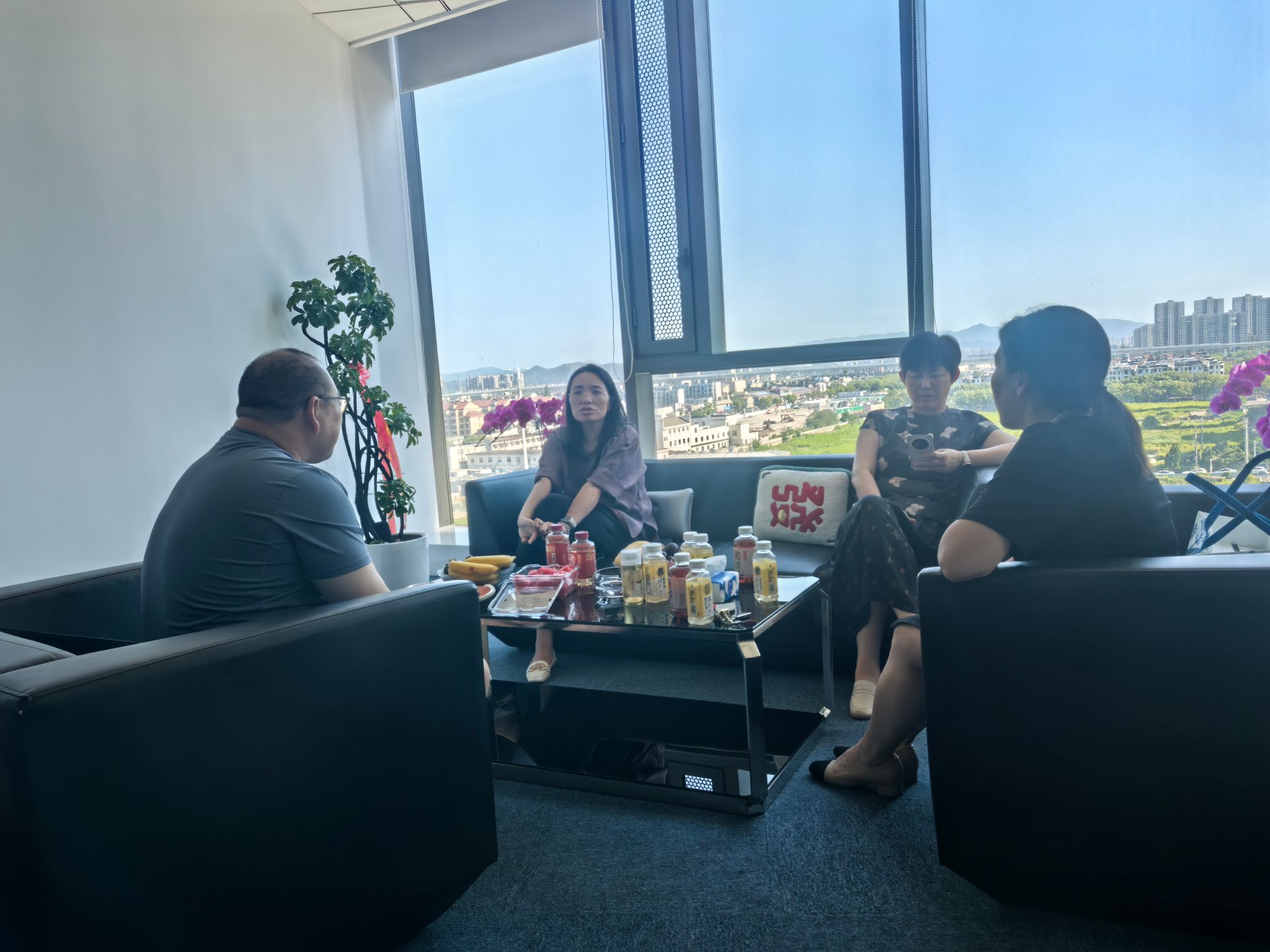 党委书记童莹娟、党委副书记胡秋丽、学院校友办主任顾慧亚及校乒乓球队教练邵诗蕊一行走访2012级校友耿浩文、现任宁波达麦网络科技有限公司负责人,并就深化校企业合作、加强校友联络等议题展开深入交流。