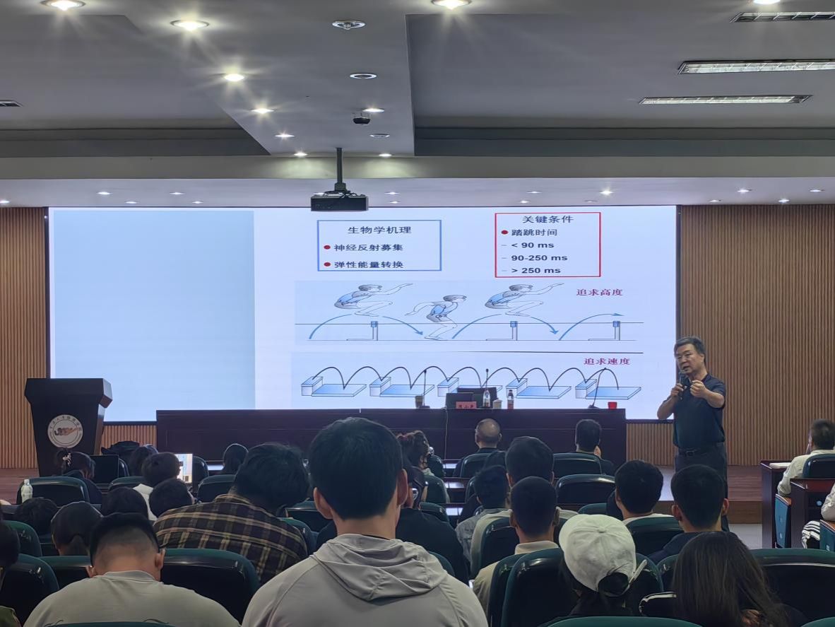 讲座上,陈小平教授围绕巴黎奥运会,从世界运动训练的前沿理论与实践两个维度进行了深入解析。他详细阐述了“三位一体”、基于生物学新技术的实验室训练等运动训练模式,重点介绍了高强度间歇训练、血流阻断训练等运动训练方法,同时根据耐力的乳酸阈和两极化训练理论、基于生物学的专项运动特征及其训练等运动训练理论,结合实际案例,生动且深刻地展示如何将这些理论与实践有机结合,为青年教师与学生提供了极具价值的建议和指导。