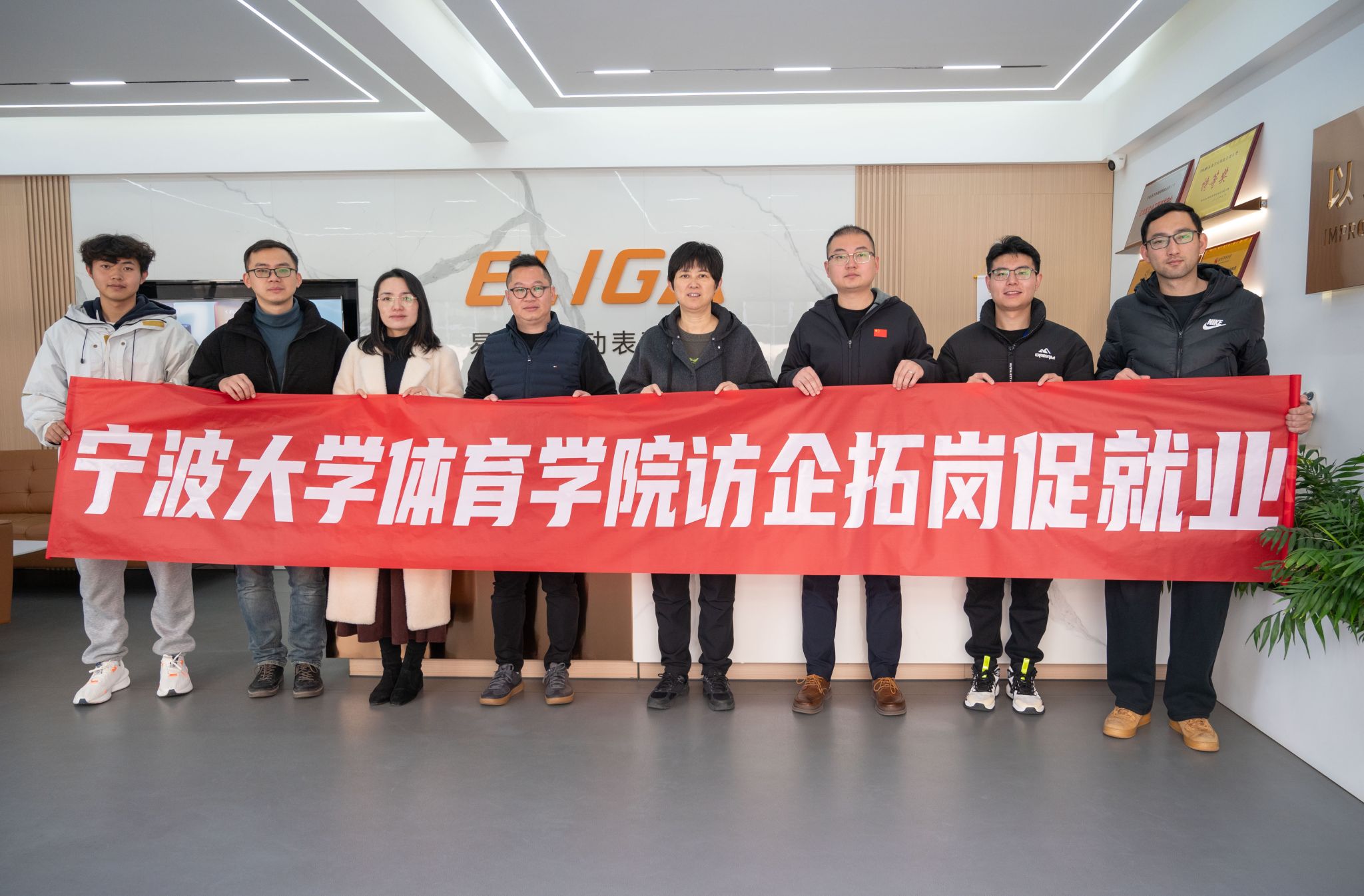 为深入实施“访企拓岗促就业”专项活动,拓展就业资源、拓宽就业渠道,2月26日,学院党委书记童莹娟带队前往宁波易力加运动科技有限公司,开展访企拓岗促就业活动。随行人员包括院党委副书记胡秋丽、院党委委员孙冬、辅导员池邵威等。