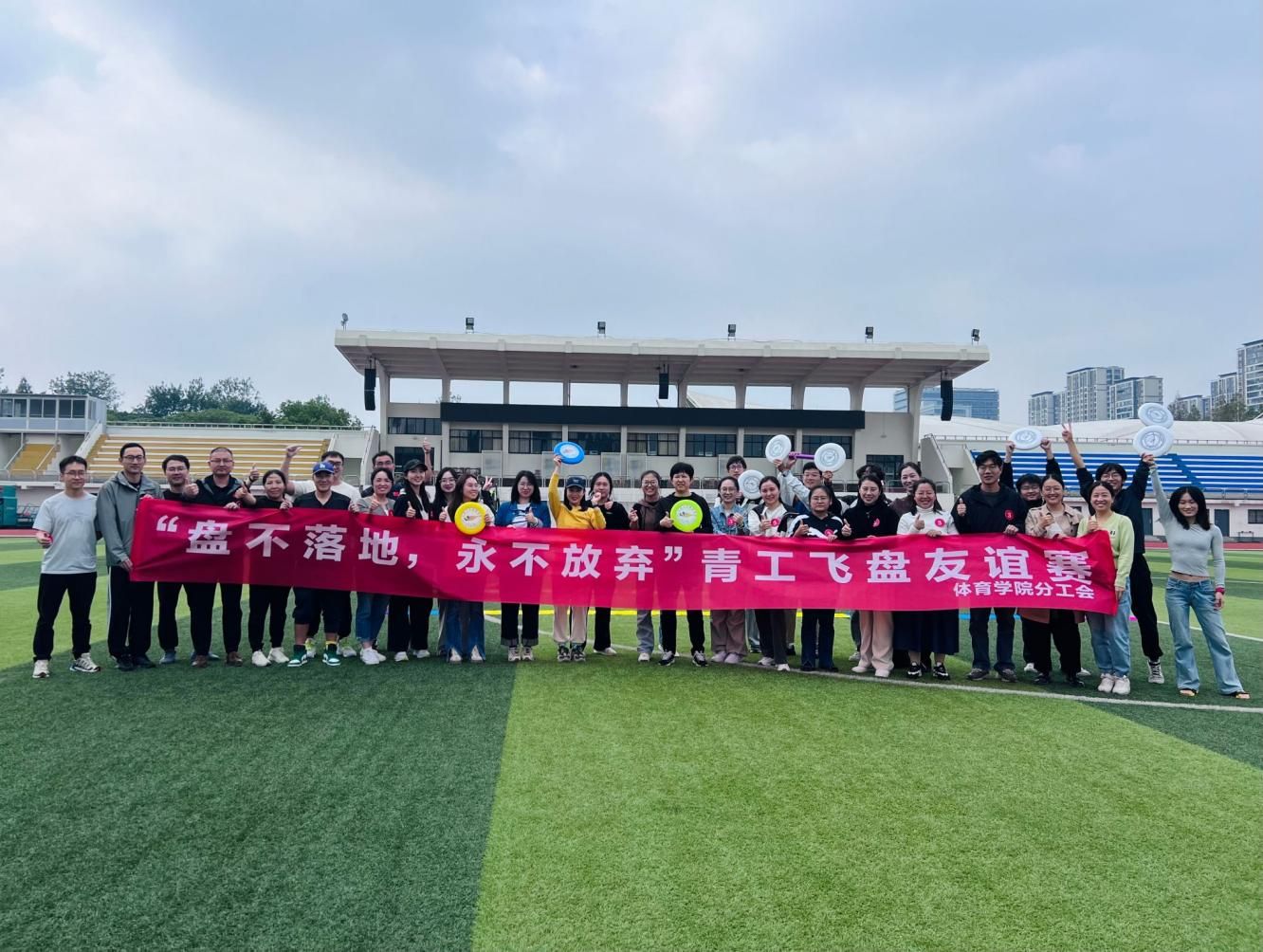 东区田径场的上空,一道道色彩斑斓的飞盘划破天际,伴随着欢声笑语与阵阵掌声,一场别开生面的教职工飞盘大赛在此激情上演!这不仅是一场体力与智慧的较量,更是一次团队精神的璀璨绽放,让我们一同见证这场属于教育者的运动盛宴!