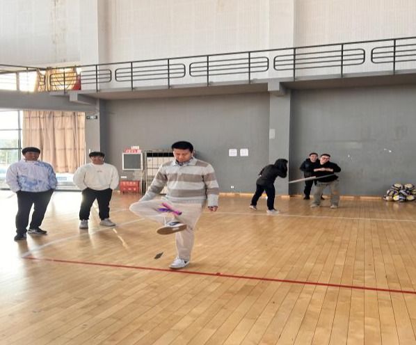 个人比赛中,随着一声令响,加油!加油!”比赛赛场瞬间淹没在震耳欲聋的口号声和呐喊声中,跳绳比赛中,选手们身姿矫健,动作灵活,手中的跳绳在空中划出一道道优美的弧线,现场气氛热烈非凡;旋转呼啦圈比赛中,老师们各展风采,有的弯腰、有的低头,利用各种技巧保持呼啦圈的平衡和持久旋转;踢毽子比赛中,教职工们以优雅灵活的身姿与跳跃起伏的毽子共舞,绘出了一幅活力四射、其乐融融的图卷;飞盘掷准比赛中,老师们摇身一变成了身手不凡的“飞盘高手”,引来阵阵惊叹!